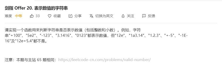 剑指offer-20 Posted on 2020-07-31 Edited on 2025-02-12 In 剑指offer 题目 结果 代码12345678910111213class Solution { public boolean isNumber(String s) { try { if (s.endsWith("f") || s.endsWith("D")) { return false; } Double.parseDouble(s); return true; } catch (NumberFormatException e) { return false; } }} 复杂度idk Donate WeChat Pay Alipay